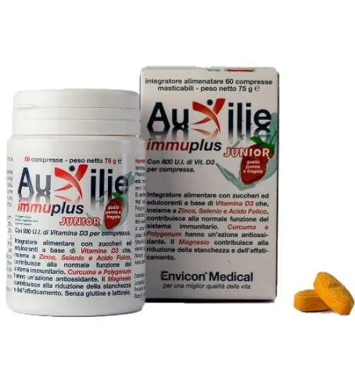 Integratore immunostimolante a base di vitamina D, Curcuma e Resveratrolo ad azione antiossidante ed antinfiammatoria, utile per sostenere i sistemi difensivi dell’organismo, stimolare il sistema immunitario e contrastare gli effetti dei radicali liberi e degli allergeni.