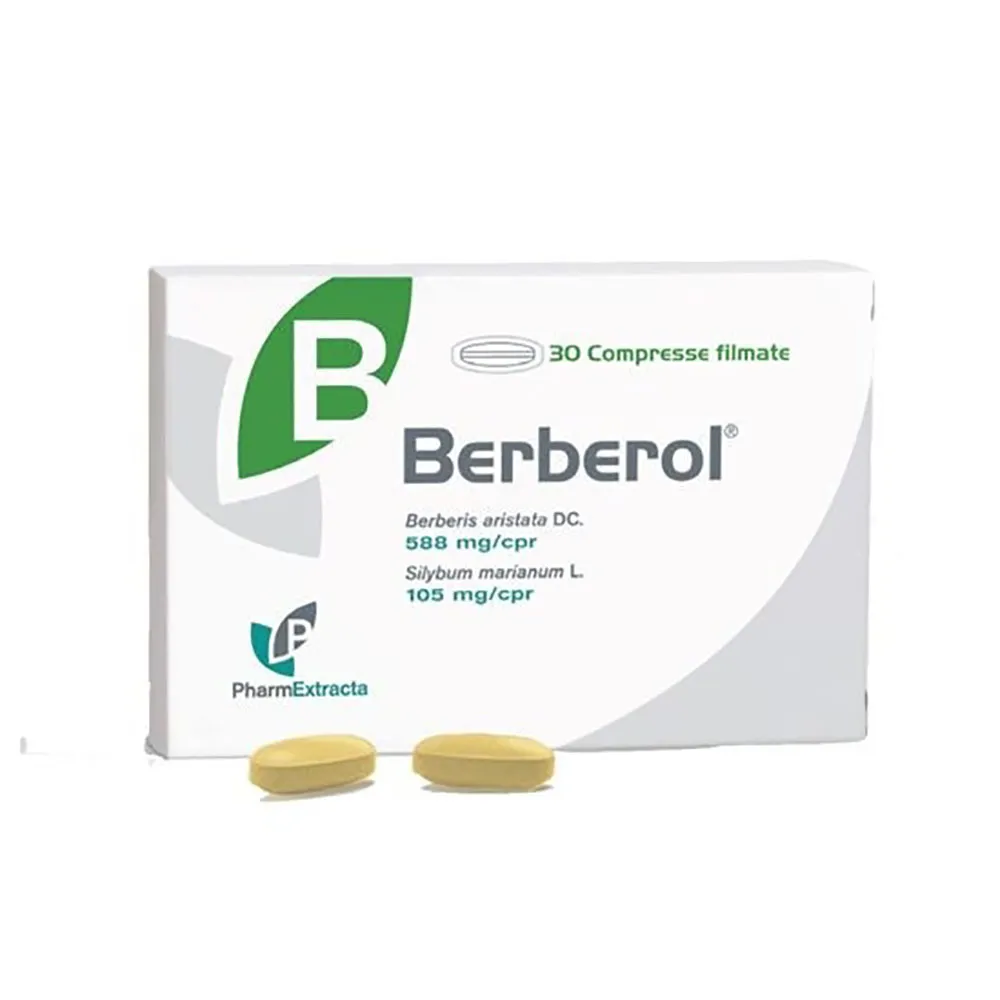 Integratore alimentare brevettato in compresse filmate contenente Berberina e Silimarina.