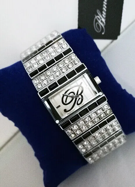 ELEGANTE OROLOGIO DONNA IN ACCIAIO TEMPESTATO DA CRISTALLI BIANCHI e NERI