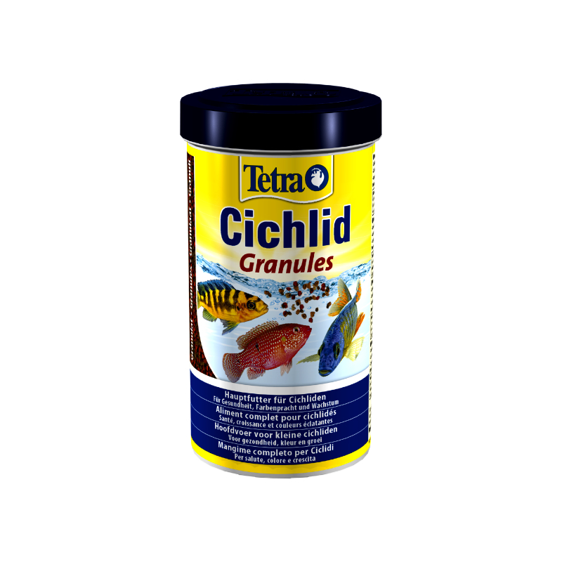 La confezione contiene 500 ml di Cichlid Granules, ideale per un’alimentazione quotidiana che supporta la salute e la vitalità dei Ciclidi di media taglia.