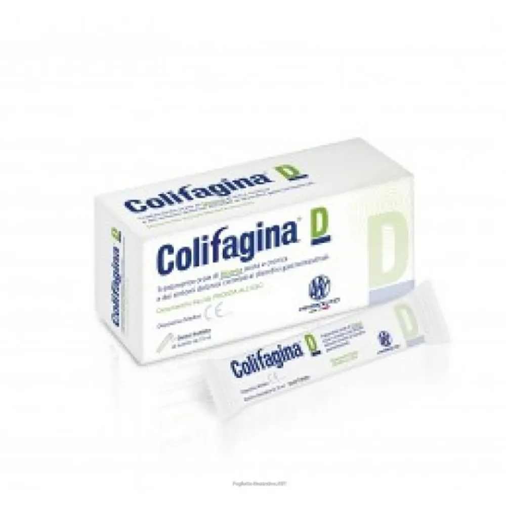 COLIFAGINA D è un dispositivo medico monouso liquido in bustine per via orale. Indicato per il trattamento di diarrea acuta e cronica e i sintomi dolorosi correlati ai disordini gastrointestinali.