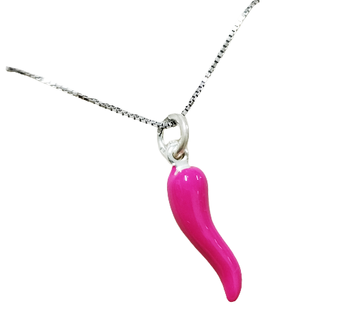 Collana Cornetto Rosa Caldo Argento 925 Regalo Portafortuna Uomo Donna