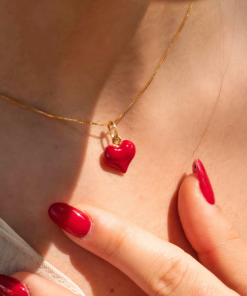 Collana Donna Cuore Rosso Bombato Argento 925 Placcato Oro Giallo Dorato Regalo
