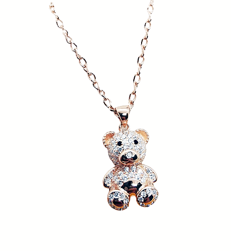 Collana Donna Orsetto Orso Argento Rose Gold Oro Rosa Zirconi Bianchi Brillanti