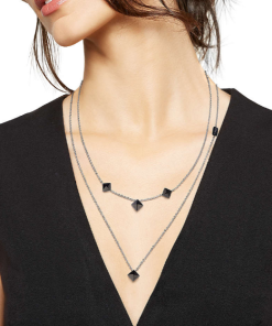 La prima catena presenta una borchia in onice nero; mentre la seconda catena presenta tre borchie sempre in onice nero.