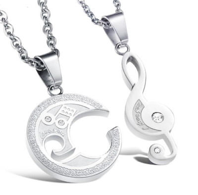 Collana Lui & Lei Regalo Coppia Dolce Metà Acciaio Chiave di Violino + 2 Collane