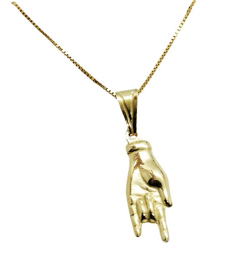 COLLANA VENEZIANA UOMO/DONNA CON CIONDOLO MANO CON LE CORNA PORTAFORTUNA.. IL TUTTO IN ARGENTO 925 DORATO (Non Annerisce)