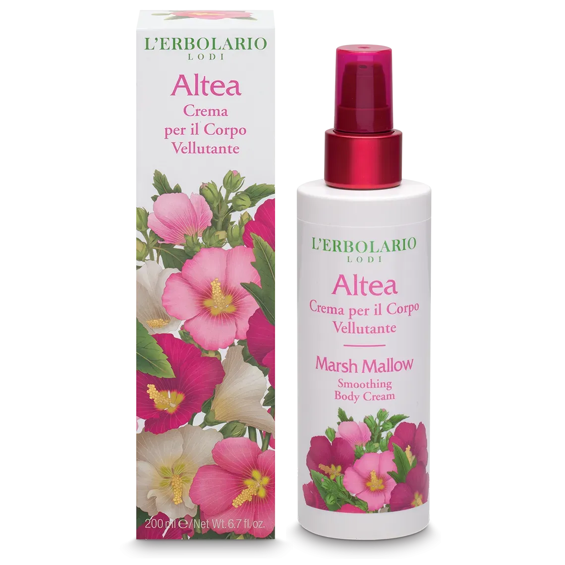 ALTEA CREMA CORPO VELLUTANTE è un Emulsione idratante dalla texture avvolgente. L’estratto addolcente di Altea, il potere nutriente e compattante del burro di Karité, l’avvolgente morbidezza del burro di Cacao e dell’olio di semi di Arancia. Un esclusivo trattamento di bellezza, dalla consistenza morbida e dal profumo delicato, che si fonde sulla pelle regalando tanta elasticità e idratazione.