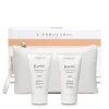 Acqua distillata ed estratto di Giaggiolo giallo, estratti di fiori di Solidago, Primula e Miele d’Acacia, oli di Cocco, Ricino e Girasole biologico, olio e burro di Mandorle dolci, Vitamina E dai semi della Soja