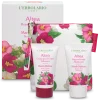 Estratto di Altea, estratto e acqua distillata di fiori d’Arancio, estratto di foglie e rametti di Limone, olio di semi di Arancia, burro di Cacao, burro di Cocco, burro d’Olivo, olio di Girasole biologico, microgranuli di nocciolo di Oliva, vitamina E dai semi della Soia, olio di Oliva e fruttosio tensioattivati.