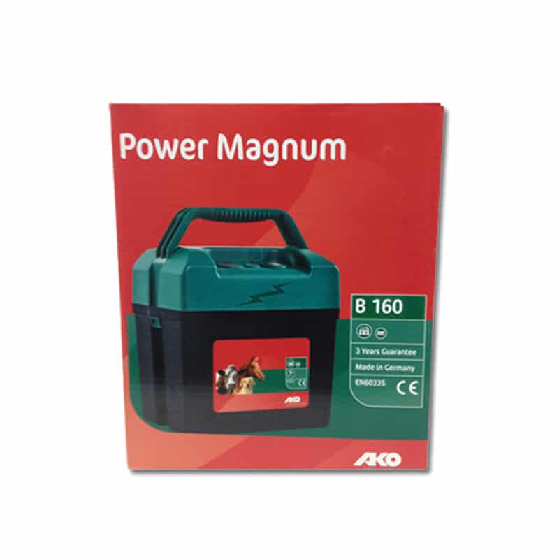 Il recinto Ako Power Magnum B160 double è un recinto elettrico adatto a cavalli, bovini e altri animali domestici. Il recinto elettrico Ako Power Magnum funziona con batteria da 9-12 volt e con aggiunta dell’adattatore per la corrente 230v (cod.17048) e nel fronte presente un utile indicatore ottico che permette di controllare costantemente la carica della batteria. Ako Magnum Power è un recinto elettrico che può lavorare a due livelli di rendimento e ha una portata massima di 7 km. Il recinto elettrico Ako Power Magnum B160 double è pratico, leggero e non ingombra: ha dimensioni 33x27x18 e peso 2,4 kg.