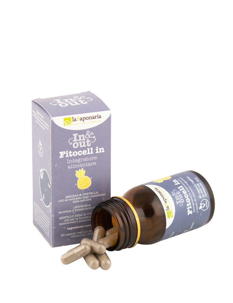 Fitocell In è un integratore alimentare naturale e 100% vegan realizzato con potenti fitocomplessi vegetali, senza conservanti nè coloranti. Formula a base di ananas e bromelina, sostanza estratta dal gambo dell’ananas ad altissima azione antinfiammatoria, fondamentale aiuto per contrastare il ristagno dei liquidi associato agli inestetismi della cellulite, e lespedeza, una pianta che contribuisce alle funzioni depurative sull’organismo, favorendo il metabolismo dei lipidi.