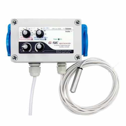 GSE Centralina per il controllo di temperatura umidità, velocità minima e sottopressione, 2 canali, regola la velocità di estrazione e di introduzione dell’aria in funzione alla temperatura e umidità desiderata nell’ambiente.