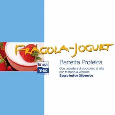 Sciroppo di fruttosio; proteina del latte (19,6%); marzapane perdiabetici (15,5%); (mandorle (50%); fruttosio; acqua; sorbitolo); fruttosio, yogurt magro in polvere (4,6%); sciroppo di glucosio; collagene idrolizzato; latte in polvere; estrudato di riso e frumento (riso; frumento; malto); burro di cacao; fragola in polvere (2,5%); cacao; aromi; latte magro in polvere; correttore di acidità: acido citrico; colorante: concentrato di succo di rapa rossa; acido ascorbico; acetato di vitamina E; emulgatore lecitina di soia; tiamina mononitrato; riboflavina; piridossina cloridrato cobalamina; D-pantotenato di calcio; niacinamide.