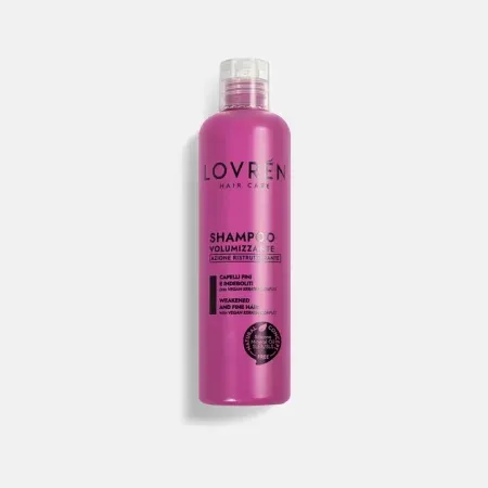 Formula ideale per capelli fini e danneggiati, lo Shampoo Volumizzante con Azione Ristrutturante di Lovrén non contiene siliconi, paraffina, microplastiche e Sles/SLS ed è perfetto per donare spessore alla chioma.