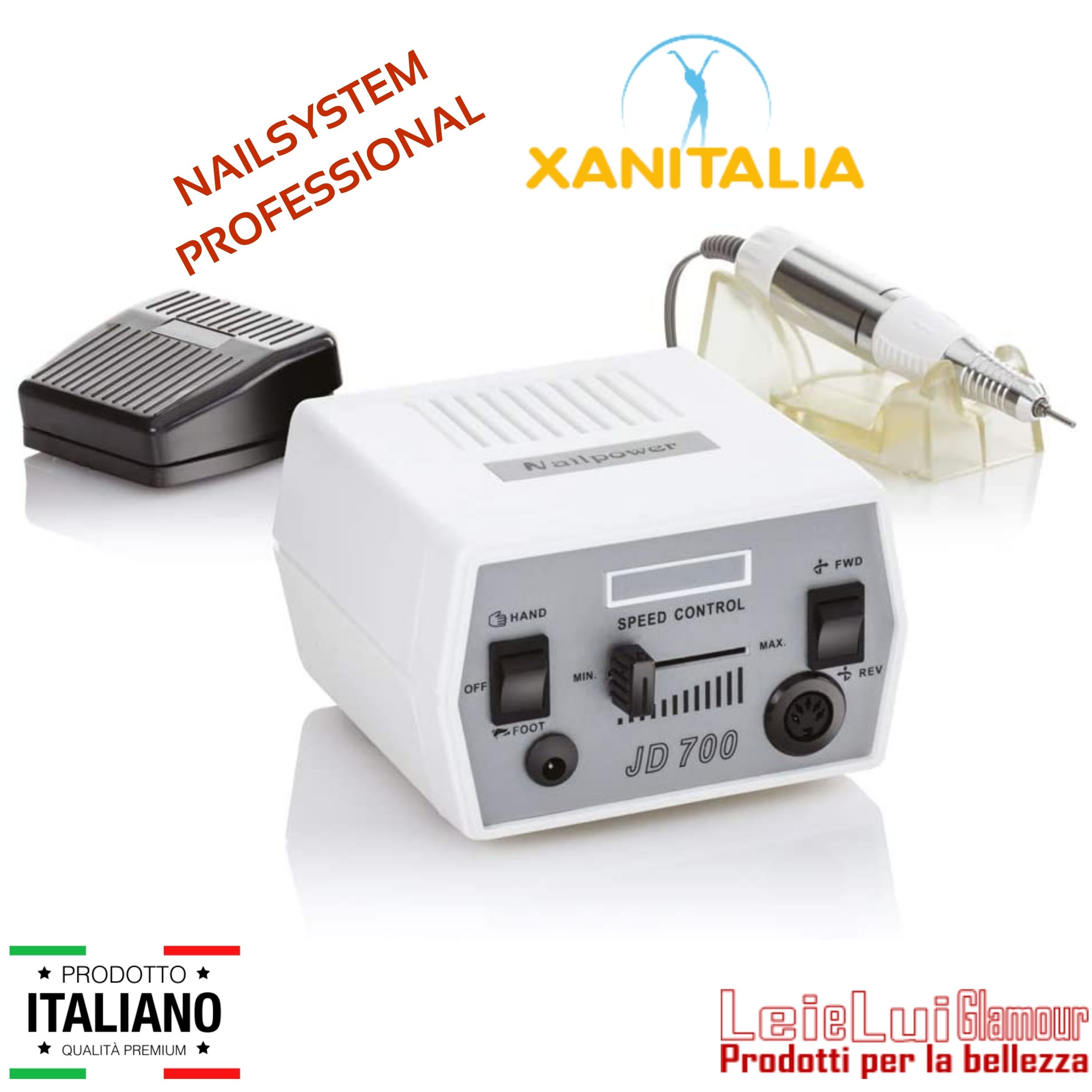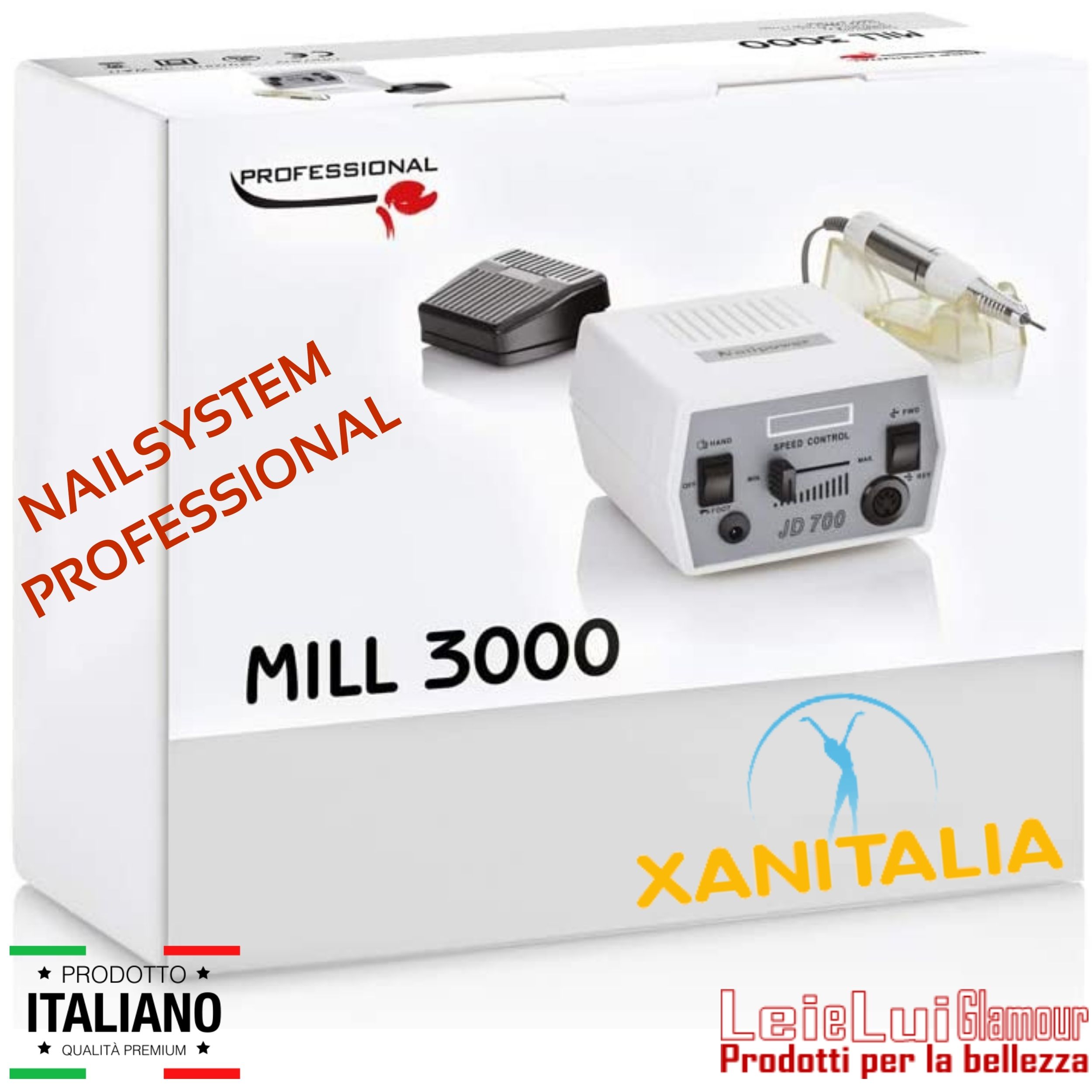 MILL 3000 JD 700 NAILSYSTEM PROFESSIONAL by XANITALIA è una fresa potente e leggera, dotata di manipolo con micromotore.