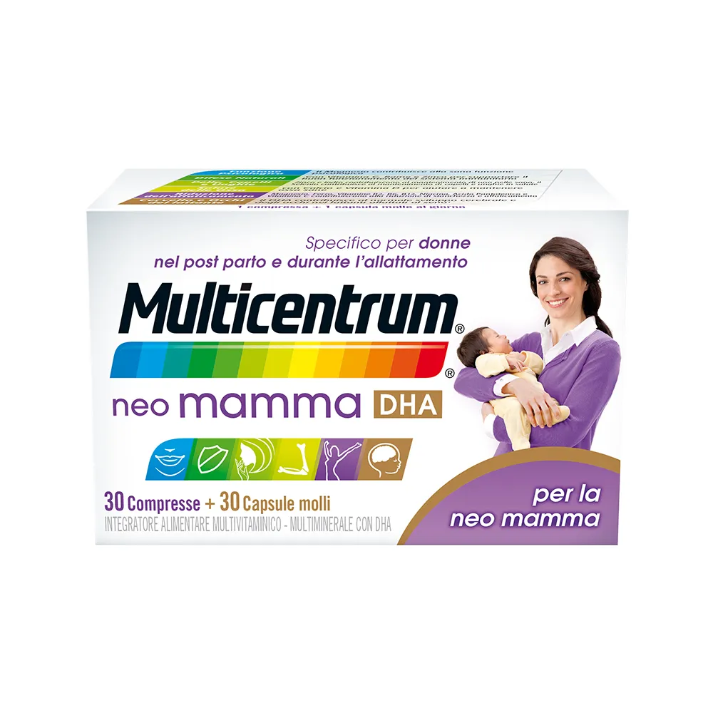 Multicentrum Mamma DHA è un integratore alimentare multivitaminico multiminerale adatto alle donne che hanno partorito.