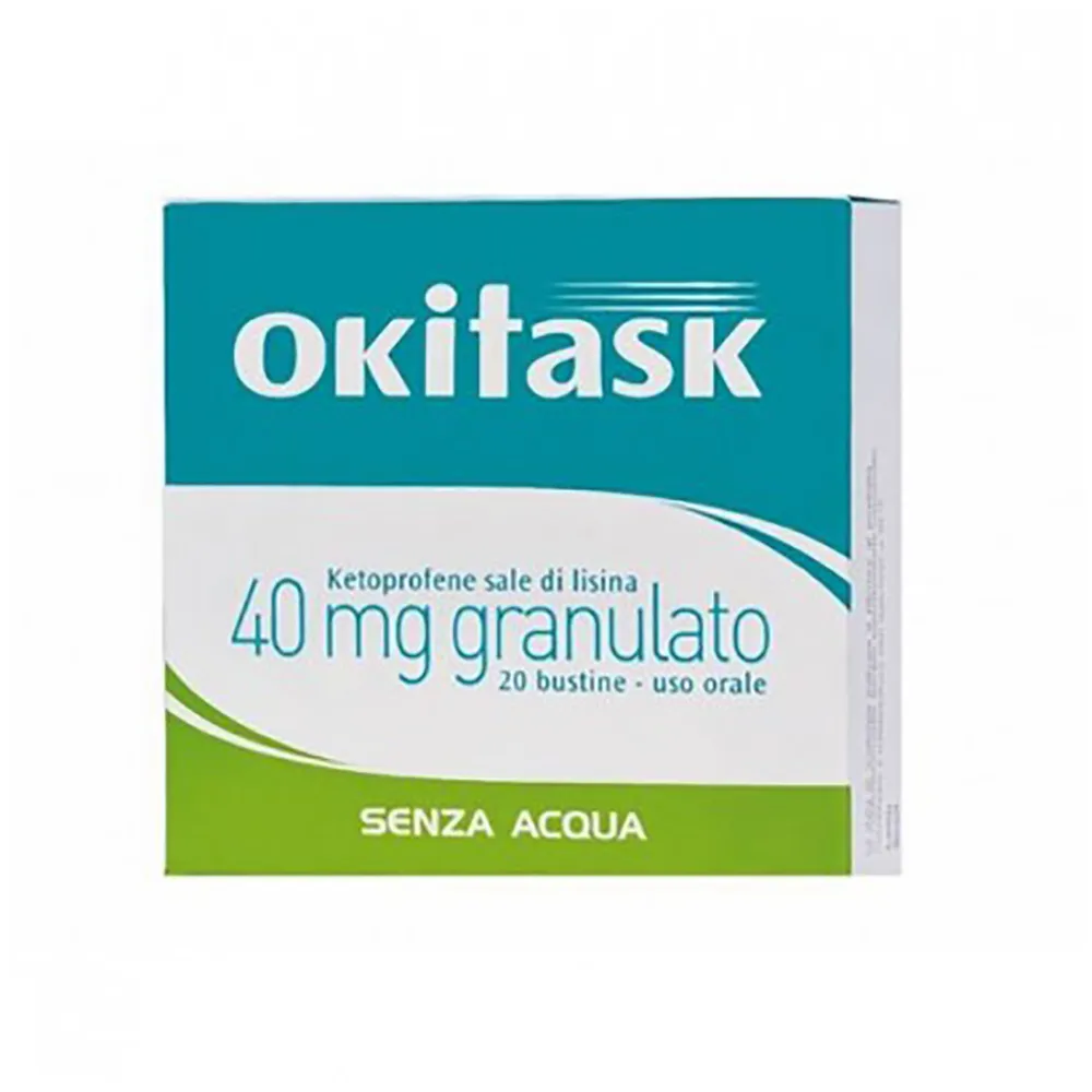 Okitask è un farmaco a base del principio attivo Ketoprofene Sale Di Lisina, appartenente alla categoria degli Analgesici FANS e nello specifico Derivati dell’acido propionico. E’ commercializzato in Italia dall’azienda Dompé Farmaceutici S.p.A..