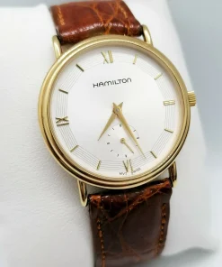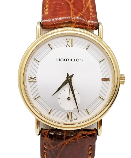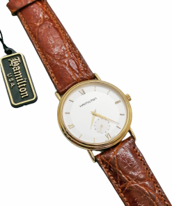 - QUADRANTE BIANCO CON NUMERI ROMANI E DETTAGLI ORO – LOGO HAMILTON AD ORE 12