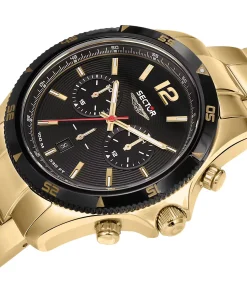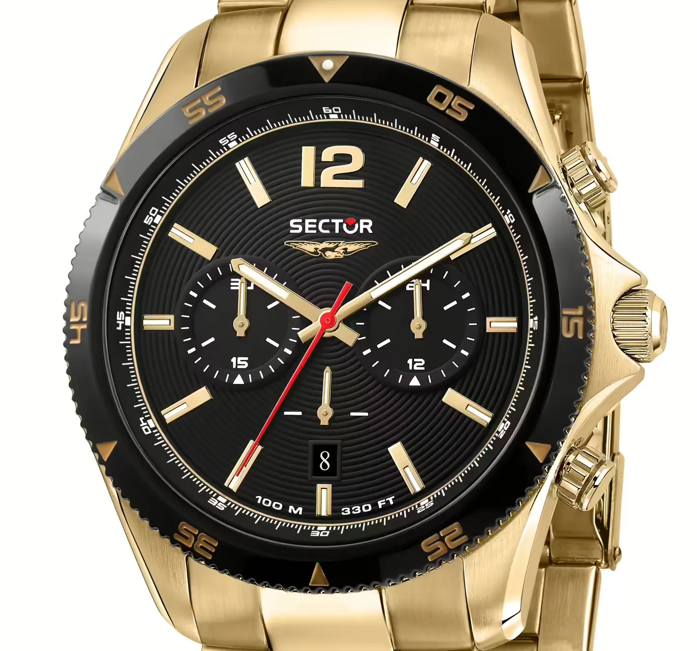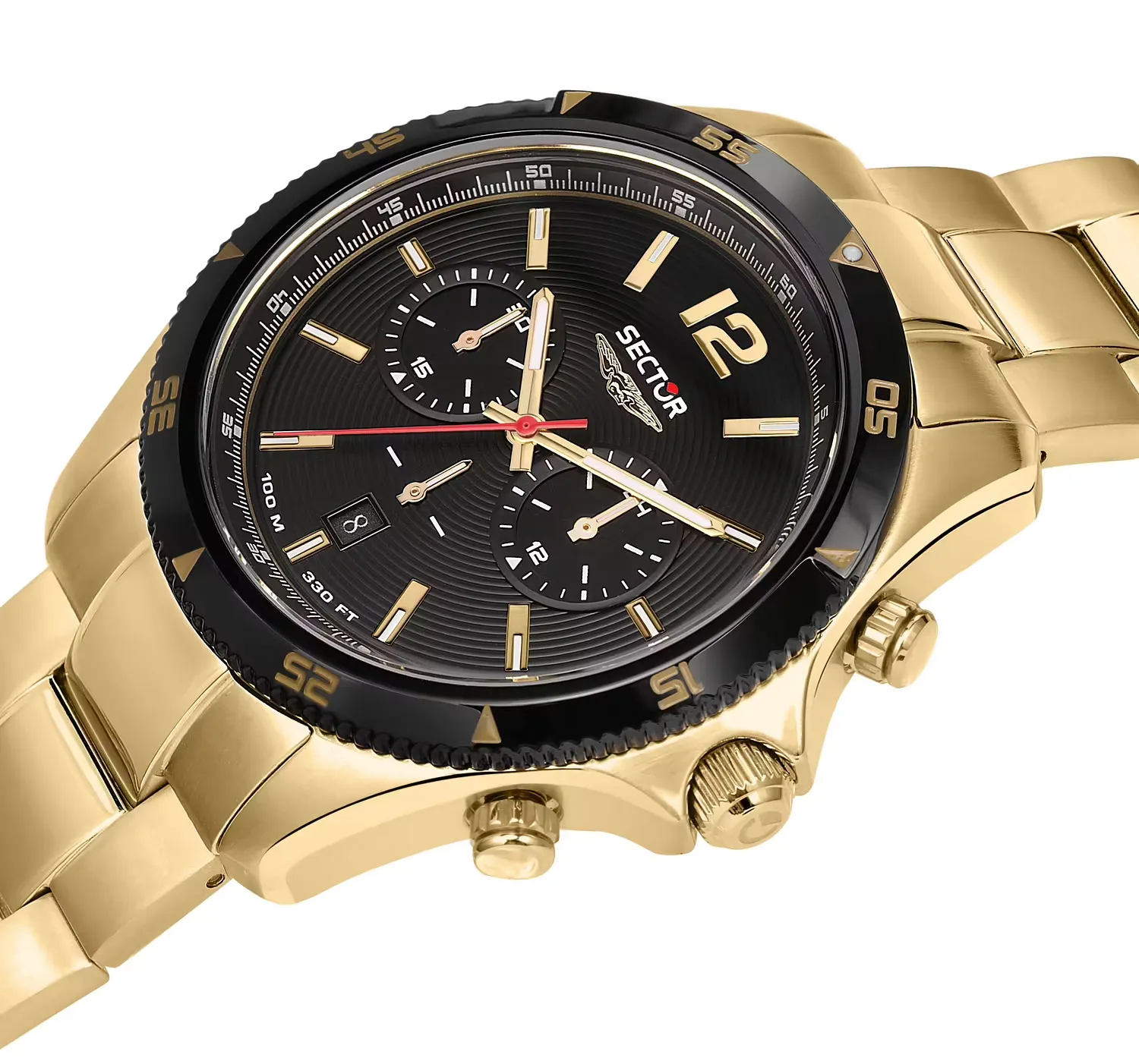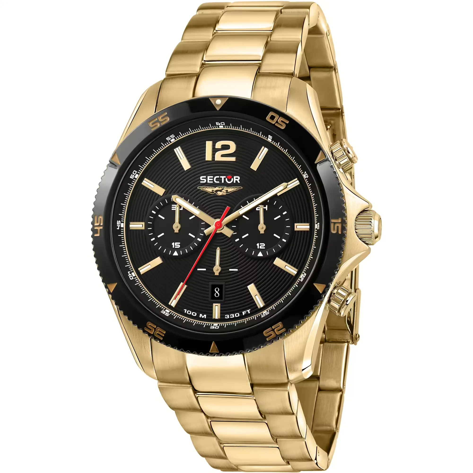 Orologio Uomo Sector Cronografo Acciaio Placcato Oro Quadrante Nero 45mm