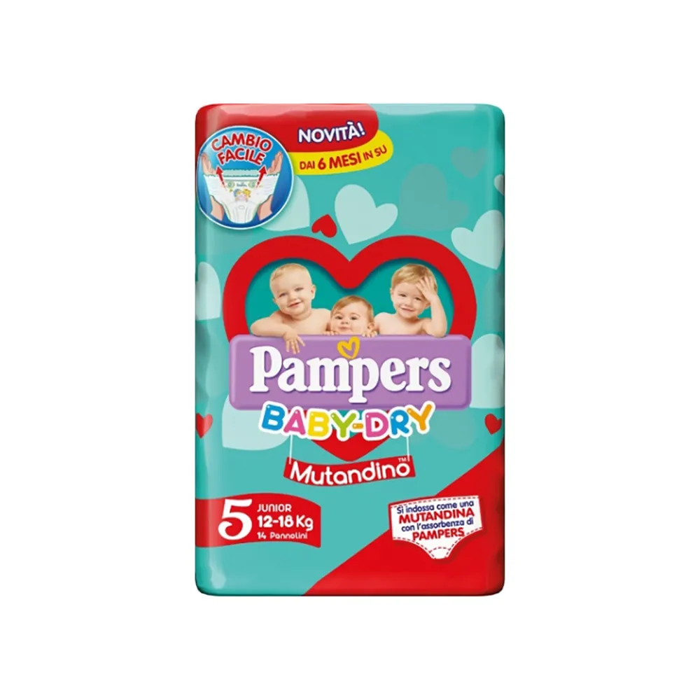 Pampers Baby Dry Mutandino Junior, 14 Pannolini, Taglia 5 (12-18 kg).