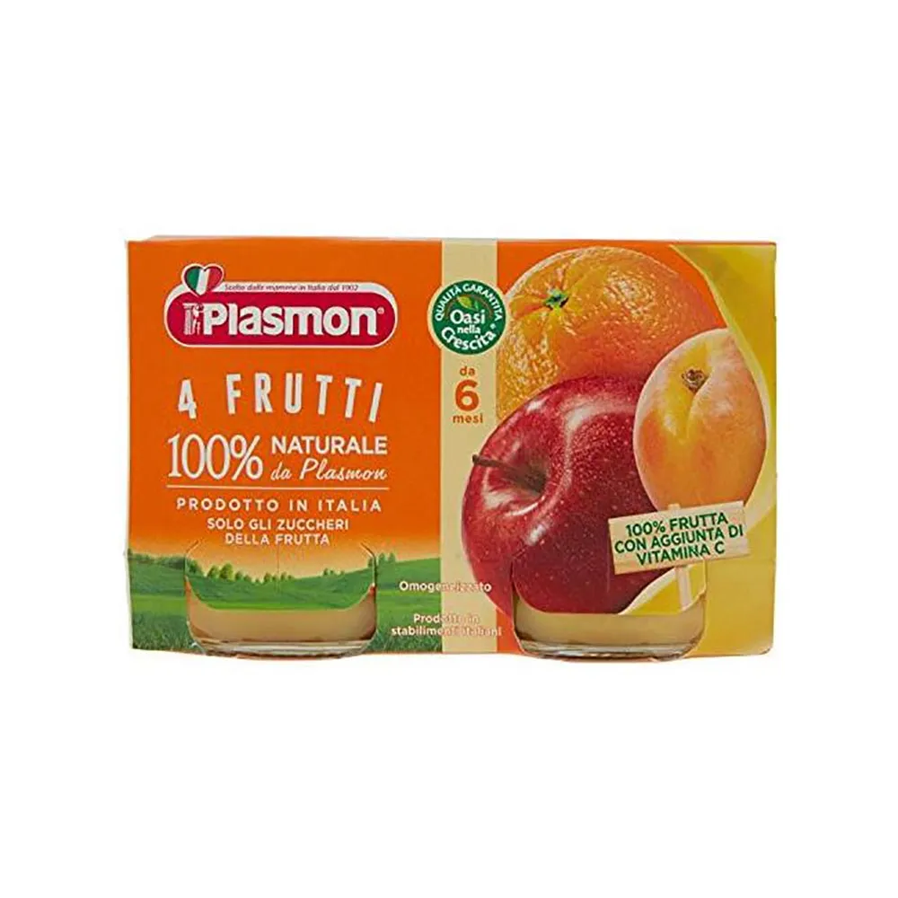 L’omogeneizzato di frutta (mela, banana, albicocca e arancia)è con vitamina C. Al 6° mese, salvo diversa indicazione del Pediatra.