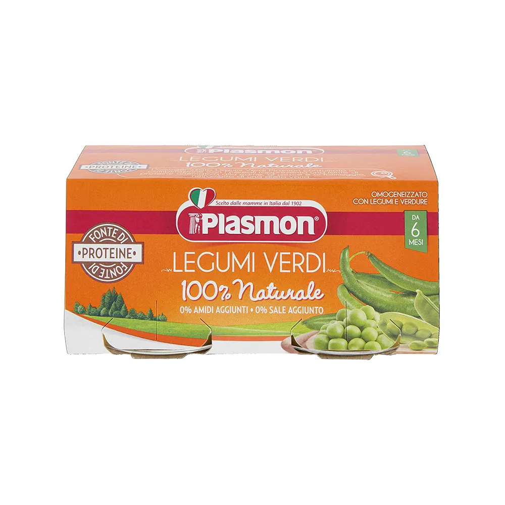 Plasmon LEGUMI VERDI Omogeneizzato di verdure, ideale per la preparazione della pappa fin dall’inizio dello svezzamento. Ideale per far assaggiare al bambino i legumi e variare il gusto della pappa. Contiene il brodo di cottura per mantenere le proprietà delle verdure cotte al vapore. Dal 6° mese, salvo diversa indicazione del Pediatra.
