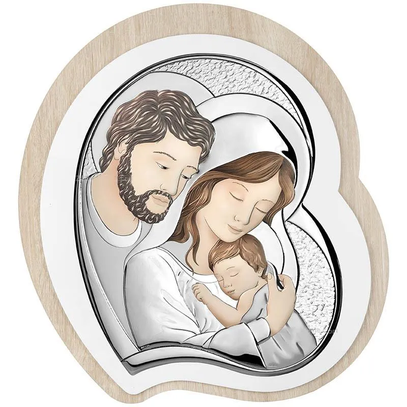 Quadro Atelier Icona Cuore Sacra Famiglia Da Tavolo o Parete In Argento e Legno