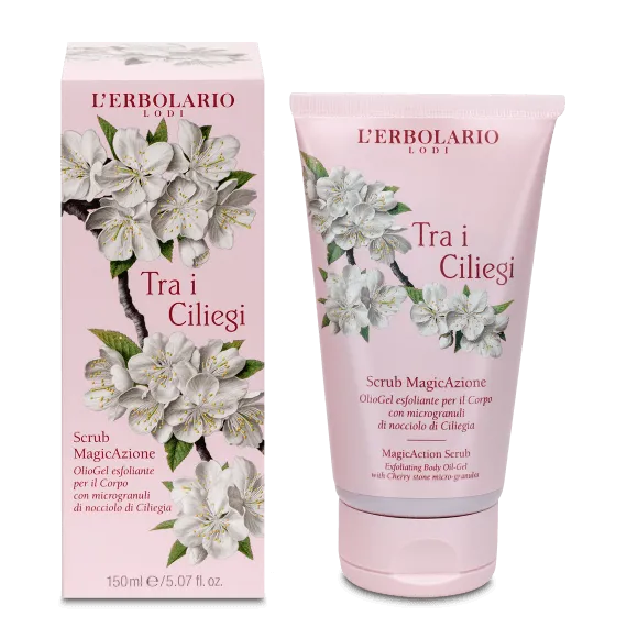 Questo speciale OlioGel – contenente olio di semi di Ciliegia e microgranuli di nocciolo di Ciliegia – è caratterizzato da un’innovativa texture che cambia sotto le vostre mani: una volta applicato su pelle asciutta, lo Scrub MagicAzione si ammorbidisce e si rivela ideale per un massaggio esfoliante, utilissimo per rimuovere le impurità e le cellule morte superficiali. Dopodiché, a contatto con l’acqua, il prodotto si trasforma in una piacevole emulsione lattescente che lascia la pelle morbida e vellutata.
