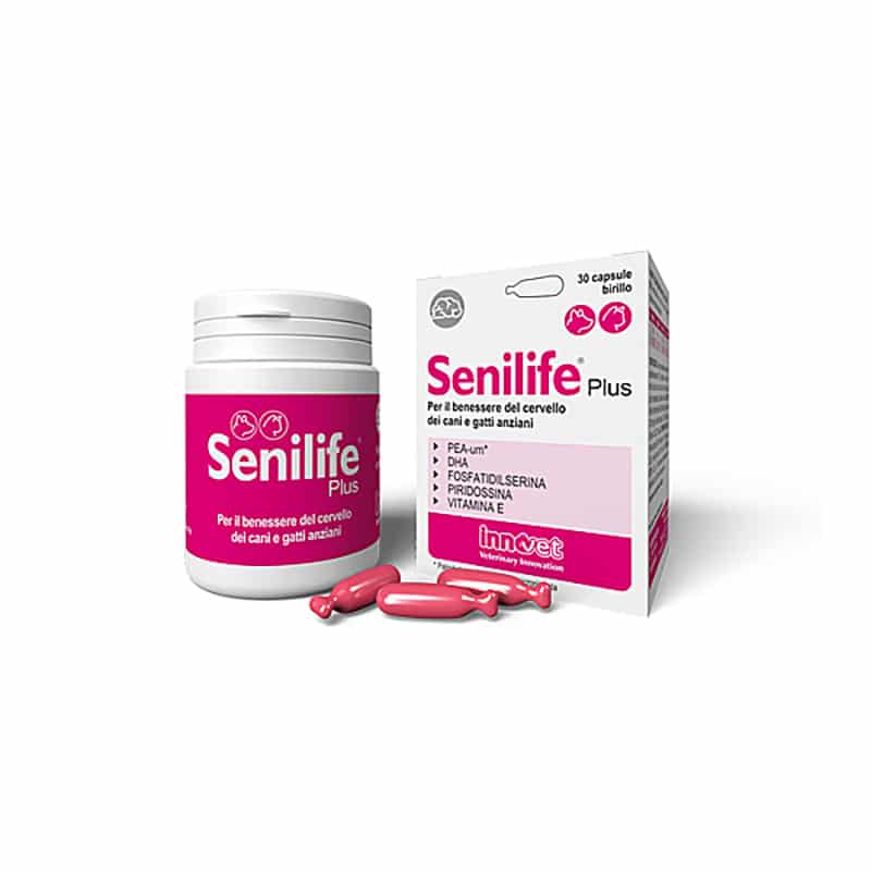 Senilife Plus 30 cpr è un integratore alimentare per cani e gatti anziani, formulato per supportare la funzione cerebrale e contrastare gli effetti dell’invecchiamento. Grazie alla Fosfatidilserina e agli altri componenti con attività antiossidante, Senilife Plus aiuta a proteggere i neuroni, preservare la memoria e mantenere un corretto flusso ematico cerebrale.