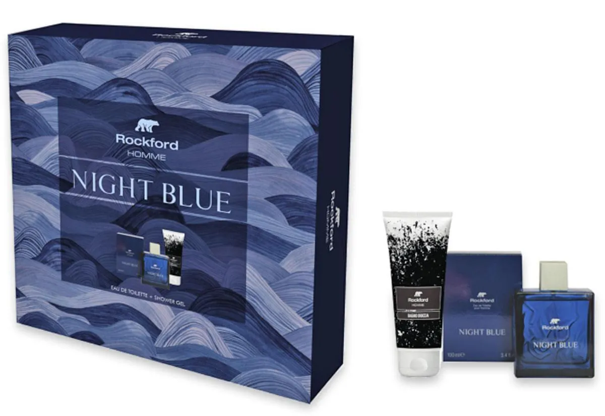 Set Uomo Profumo Rockford Night Blue Edt 100ml + Gel Doccia e Campioncini Regalo