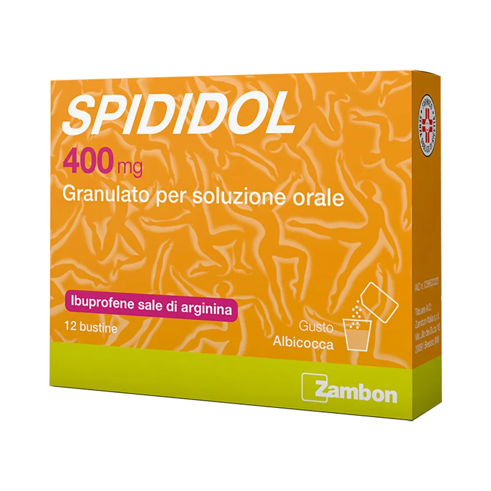 Adulti e ragazzi oltre i 12 anni: 1 compressa rivestita con film o 1 bustina, due-tre volte al giorno. La dose massima giornaliera non deve superare i 1200 mg al giorno. – Anziani: i pazienti anziani dovrebbero attenersi ai dosaggi minimi sopraindicati. Nel trattamento dei pazienti anziani la posologia deve essere attentamente stabilita dal medico che dovrà valutare una eventuale riduzione dei dosaggi sopraindicati. – In pazienti con alterata funzionalità renale, epatica o cardiaca i dosaggi dovrebbero essere ridotti. – Insufficienza epatica: cautela deve essere adottata nel trattamento dei pazienti con funzionalità epatica ridotta. In tali pazienti è opportuno ricorrere al monitoraggio periodico dei parametri clinici e di laboratorio, specialmente in caso di trattamento prolungato (vedere par. 4.4). L’uso di SPIDIDOL è controindicato in pazienti con grave insufficienza epatica (vedere par. 4.3). – Insufficienza renale: cautela deve essere adottata nel trattamento di pazienti con funzionalità renale ridotta. In tali pazienti è opportuno ricorrere al monitoraggio periodico dei parametri clinici e di laboratorio, specialmente in caso di trattamento prolungato (vedere par. 4.4). L’uso di SPIDIDOL è controindicato in pazienti con grave insufficienza renale (vedere par. 4.3). In adolescenti (di età compresa ≥ 12 anni ai < 18 anni): nel caso l’uso del medicinale sia necessario per più di 3 giorni negli adolescenti, o nel caso di peggioramento della sintomatologia deve essere consultato il medico. La dose efficace più bassa deve essere usata per il periodo più breve ad alleviare i sintomi (vedere par. 4.4). Modo di somministrazione: La compressa deve essere deglutita con un po’ d’acqua. Per pazienti con uno stomaco più sensibile si raccomanda l’assunzione con il cibo. Il granulato va sciolto in un bicchiere d’acqua (50-100 ml) ed assunto subito dopo la preparazione della soluzione. Il granulato per soluzione orale deve essere assunto con il cibo.