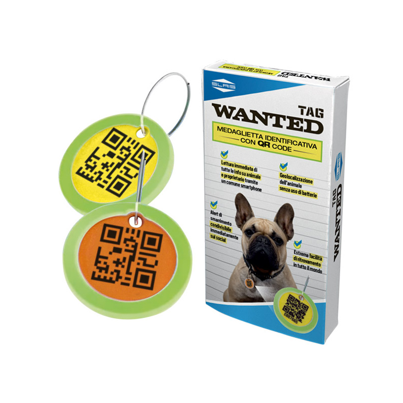 Tag Wanted è una medaglietta identificativa per cani, dotata di un QR code scansionabile da qualunque smartphone. In caso di smarrimento, chiunque trovi il tuo cane può scansionare il codice e visualizzare le tue informazioni di contatto, aiutandoti a ritrovare il tuo amico a quattro zampe velocemente e facilmente.