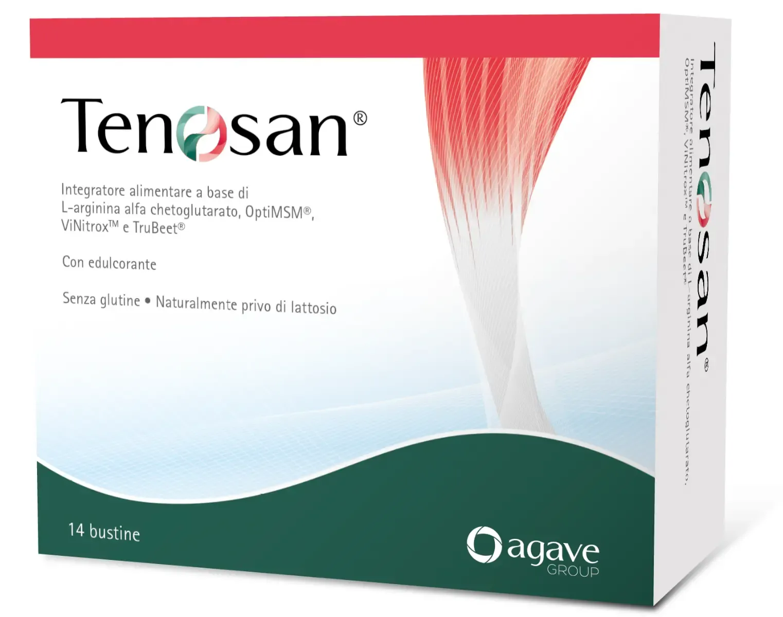 Tenosan 14 bustine è un integratore alimentare a base di L-arginina alfa chetoglutarato, OptiMSM, collagene idrolizzato di tipo I, ViNitrox, TruBeet, vitamine C e D3. Tenosan è indicato in tutti i casi di insufficiente apporto nella dieta o aumentato fabbisogno di tali nutrienti.