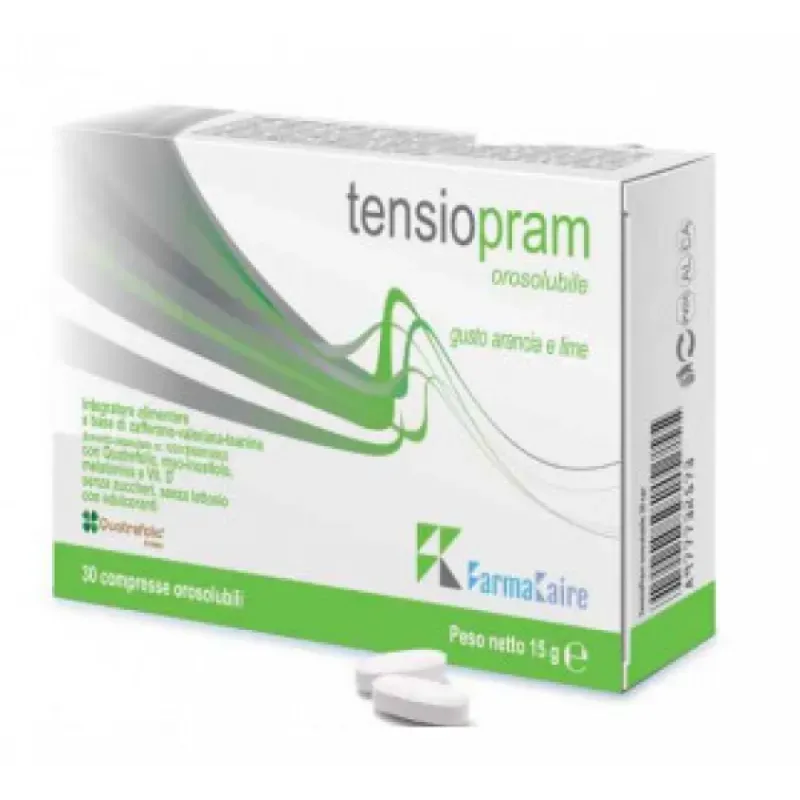 Tensiopram Orosolubile 30 cpr è un integratore alimentare a base di estratti vegetali, con zafferano-valeriana-tè verde, con Quatrefolic (folato), myo- inositolo, melatonina e vitamina D (colecalciferolo).