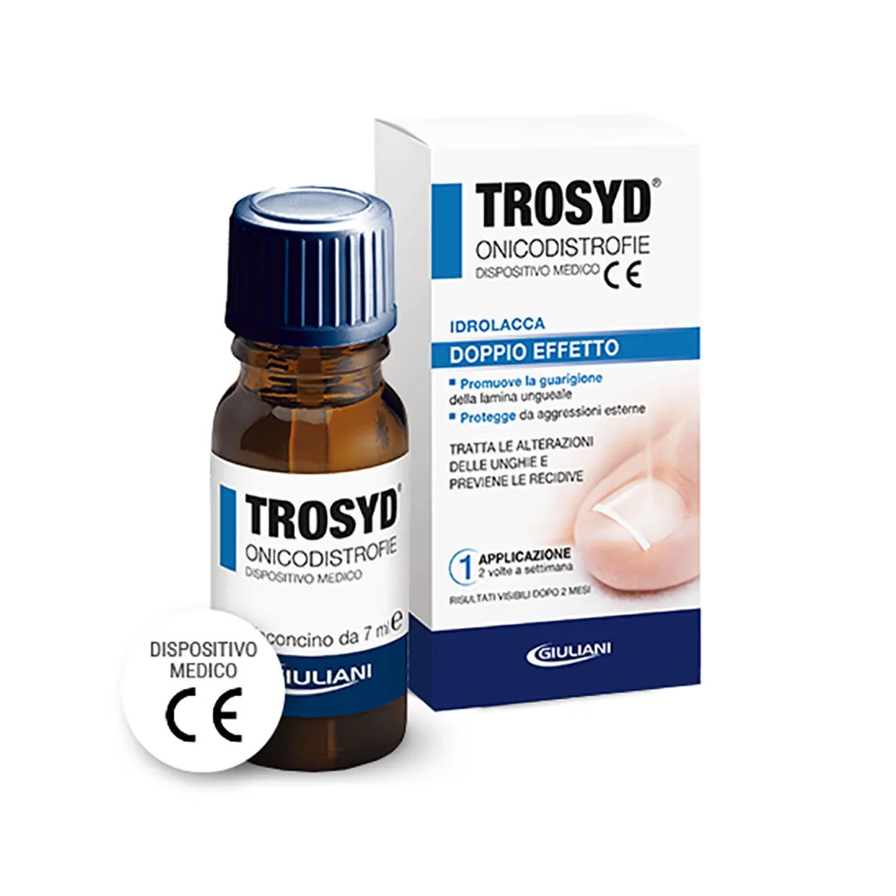 Trosyd Onicodistrofie è un’idrolacca indicata nei casi di alterazioni delle unghie causate da traumi o psoriasi, che generano ingiallimento, sfaldamento e caduta delle unghie.