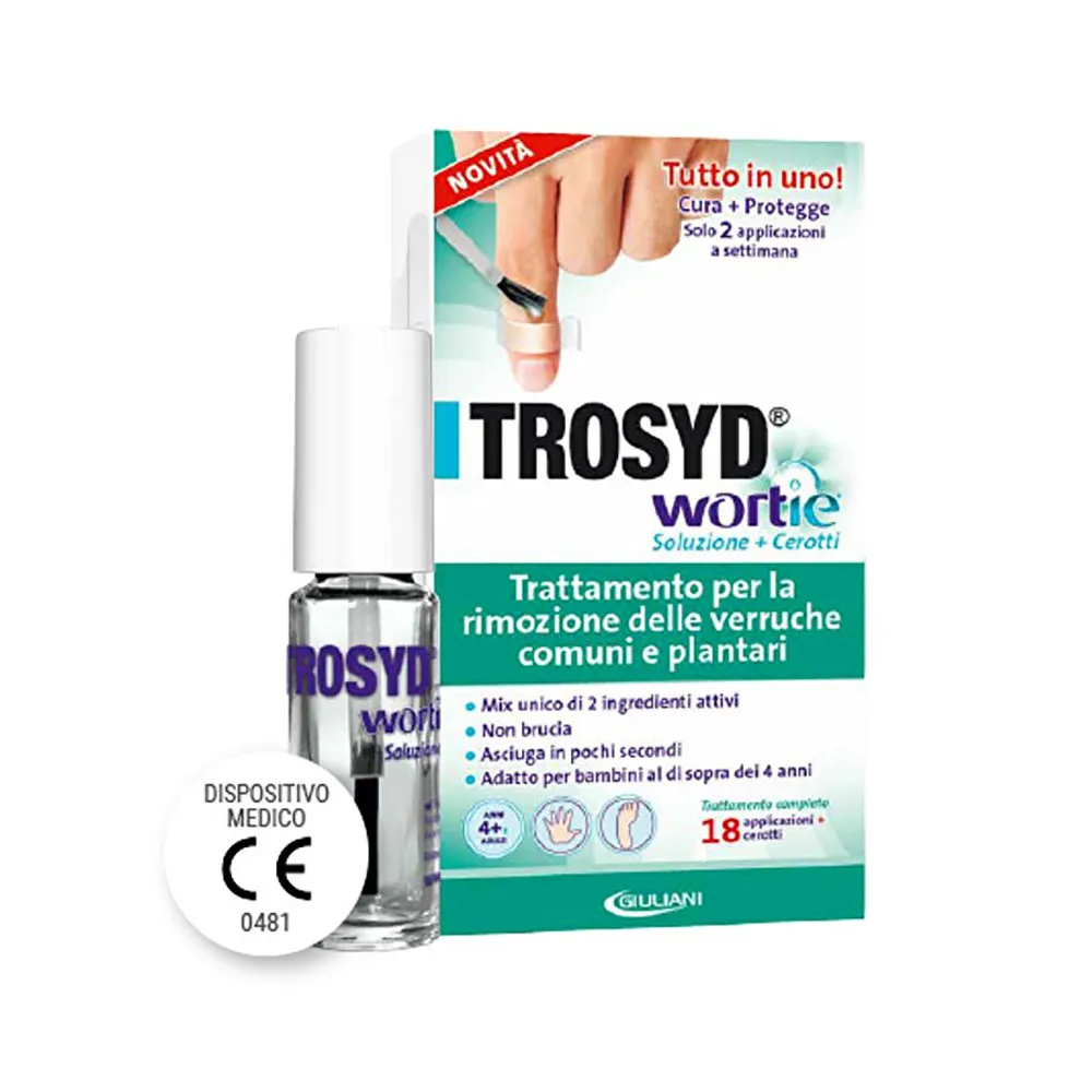Il trattamento Trosyd Wortie per la rimozione delle verruche è un prodotto da banco per il trattamento di verruche comuni e plantari, destinato ai pazienti al di sopra dei 4 anni.