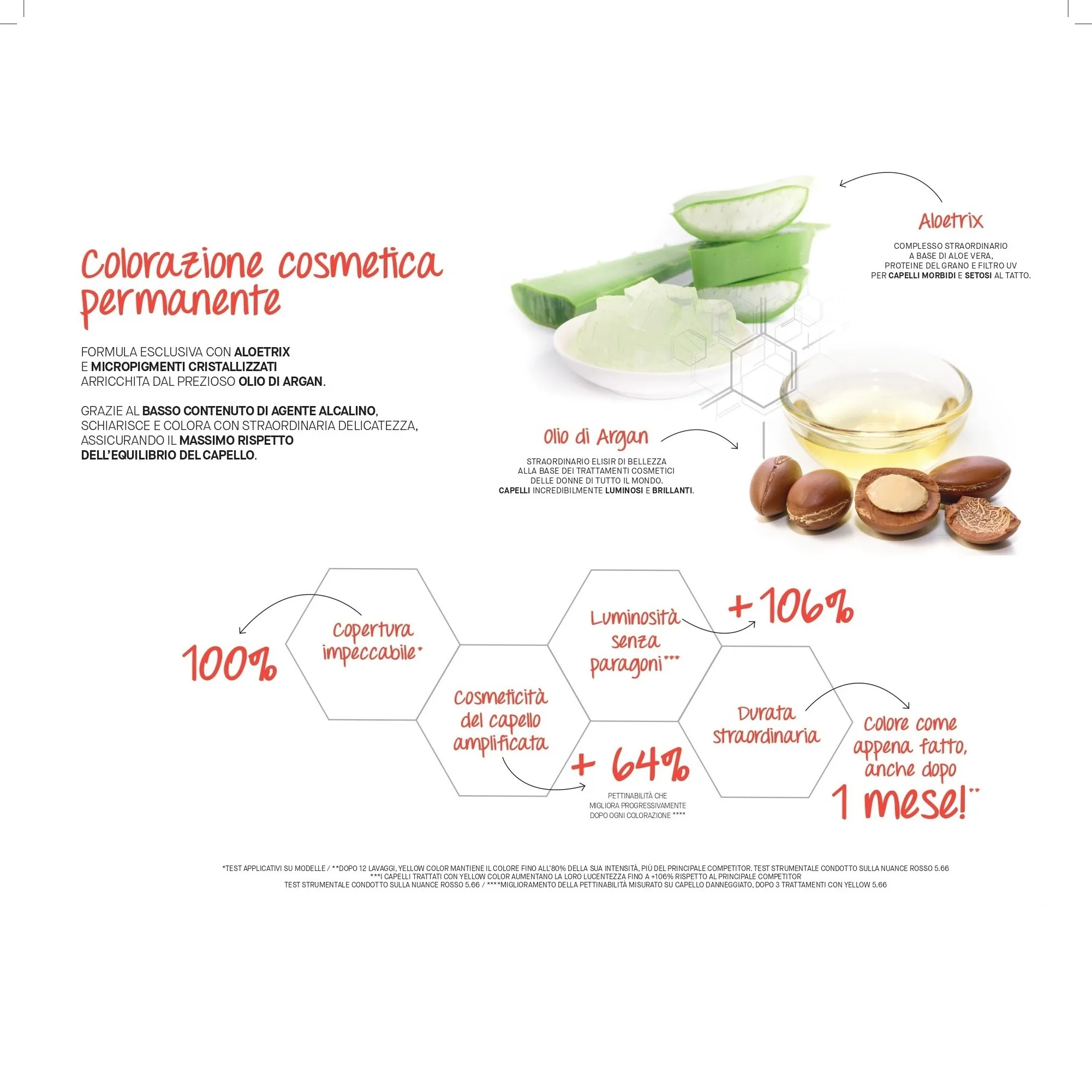 * dopo 12 lavaggi, yellow color mantiene il colore fino all’80% della sua intensità, più del suo principale competitor. Test strumentale condotto sulla nuance rosso 5.66.