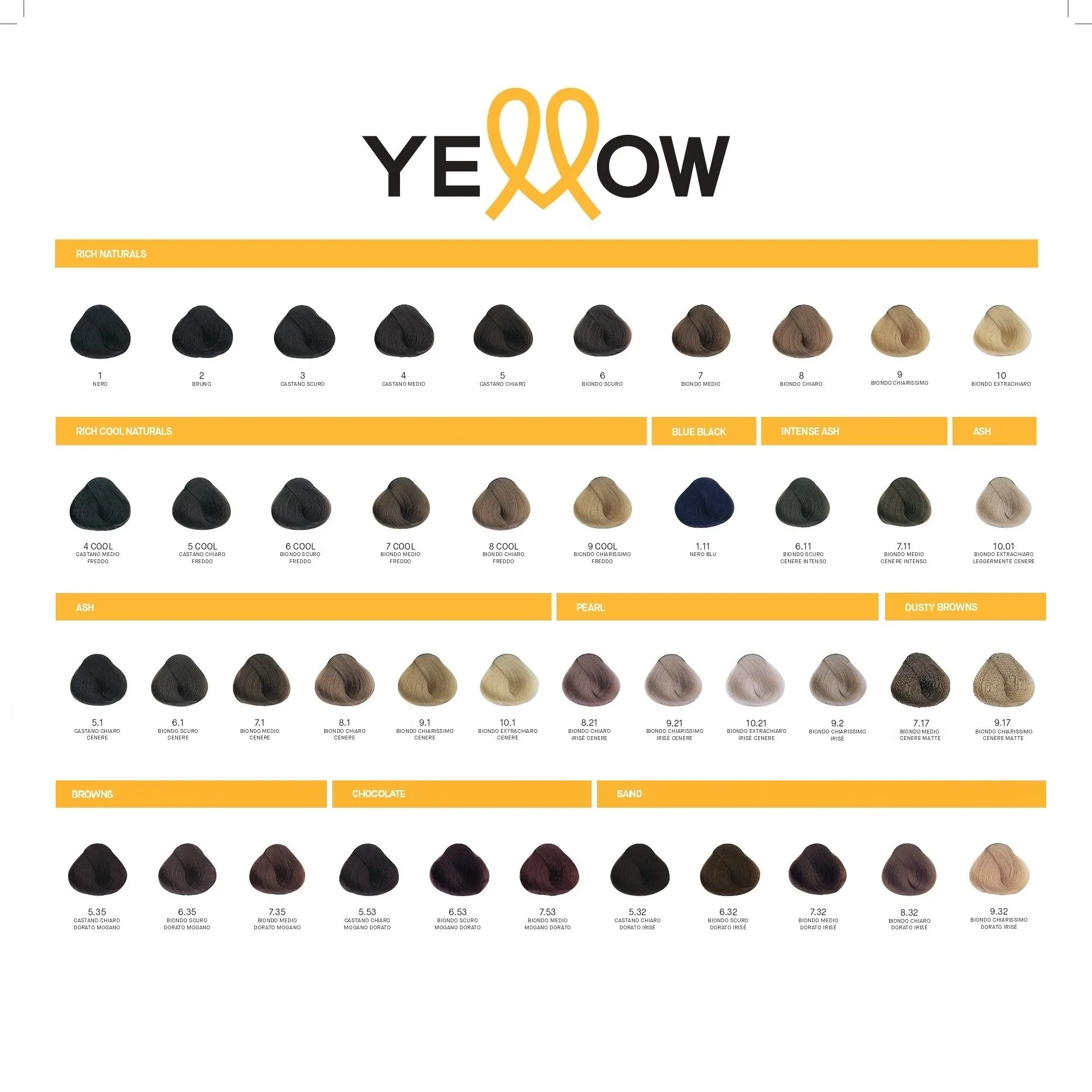 5.1 Castano Chiaro Cenere | 6.1 Biondo Scuro Cenere | 7.1 Biondo Medio Cenere | 8.1 Biondo Chiaro Cenere | 9.1 Biondo Chiarissimo Cenere | 10.1 Biondo Extrachiaro Cenere | 10.01 Biondo Extrachiaro Leggermente Cenere
