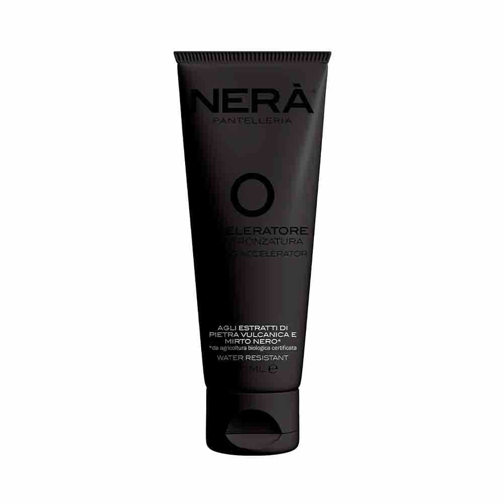 Crema a rapido assorbimento, contiene un insieme di ingredienti specifici che accelera il naturale processo di abbronzatura. Arricchito di mirto nero, pietra vulcanica, burro di karité ed olii vegetali di avocado e mandorle dolci. Non contiene filtri solari.