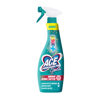Grazie alla sua speciale Formula con Ossigeno Attivo, rimuove germi e batteri da tutte le superfici di casa come seggioloni e sanitari, sgrassa anche lo sporco più ostinato in cucina ed è efficace sulle macchie d’acqua. In più, ACE Spray Universale smacchia anche i capi colorati e delicati.
