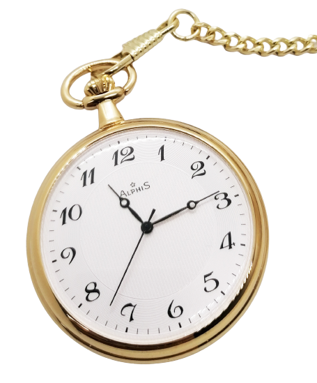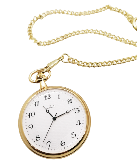 Alphis Orologio da Tasca Svizzero al Quarzo Placcato Oro 47mm Catena e Incisione