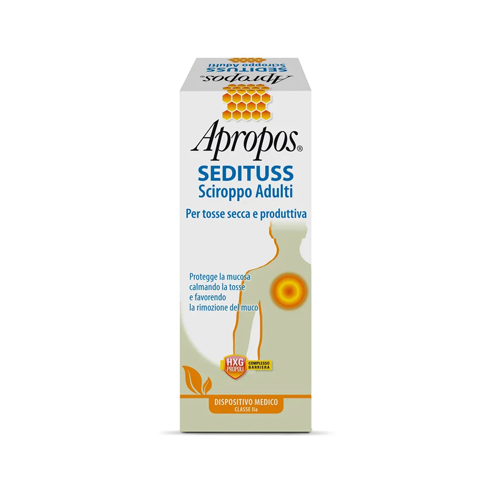Grazie al complesso barriera propoli hxg, crea un film protettivo mucoadesivo ad effetto barriera per il controllo del microambiente che, proteggendo e idratando la mucosa delle prime vie aeree, calma la tosse e rende il muco piu fluido, agevolandone la rimozione.