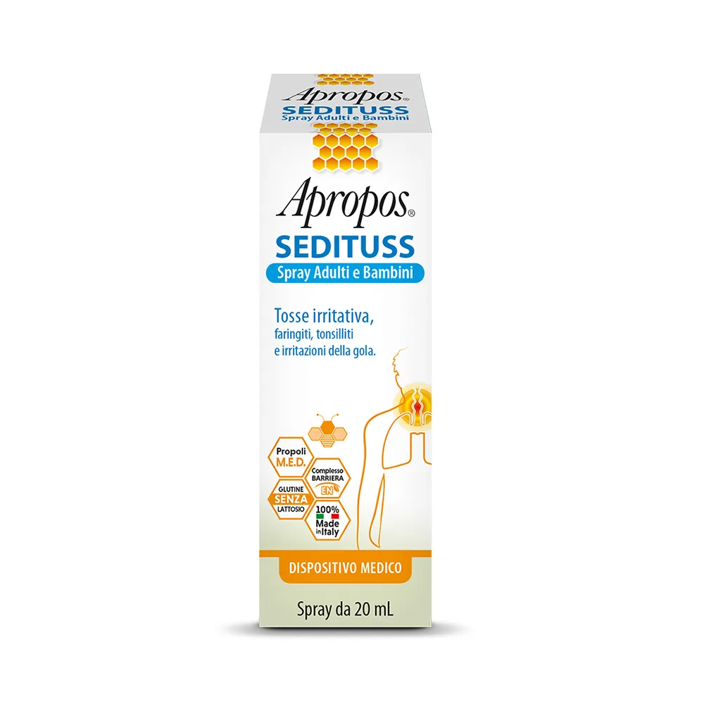 Apropos Sedituss Spray Adulti e Bambini calma i fastidi della mucosa orofaringea associati a tosse irritativa, faringiti e tonsilliti. Una gola irritata contribuisce a promuovere lo stimolo della tosse.