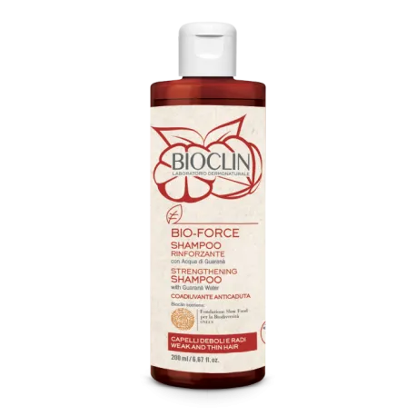Shampoo rinforzante per capelli indeboliti e radi. Shampoo rinforzante e rivitalizzante con acqua di Guaranà del Brasile Presidio Slow Food, vitamine ed un selezionato complesso vegetale. Formula innovativa e packaging ecosostenibile in R-PET a basso impatto ambientale. Capelli rinforzati, rivitalizzati e visibilmente più forti grazie alla presenza di Acqua di Guaranà Presidio Slow Food ad azione stimolante della crescita dei capelli. L’esclusivo sistema detergente delicato senza agenti schiumogeni aggressivi assicura un’azione efficace e delicata rispettando la cute più sensibile