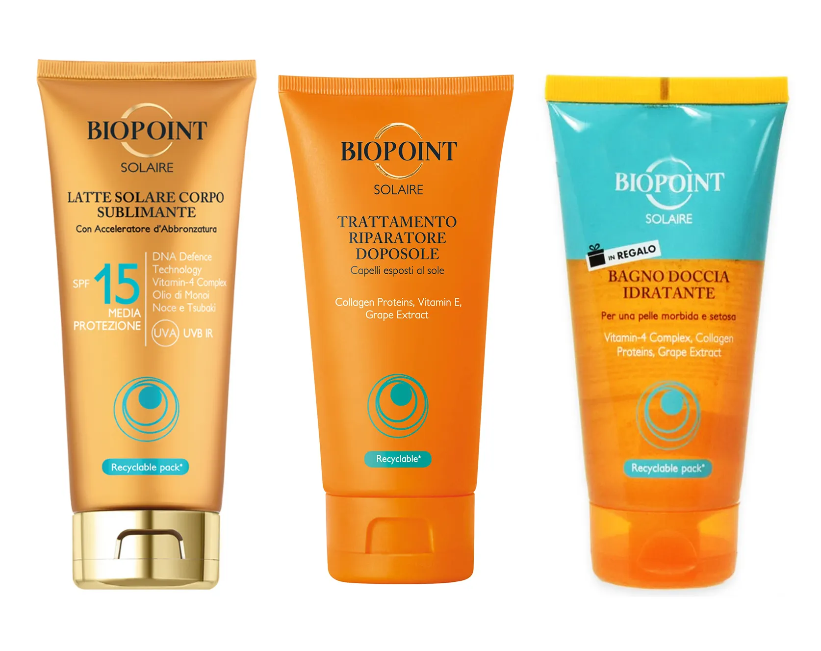Biopoint Crema Solare Protezione 15 Set Maschera Capelli Doposole e Gel Doccia