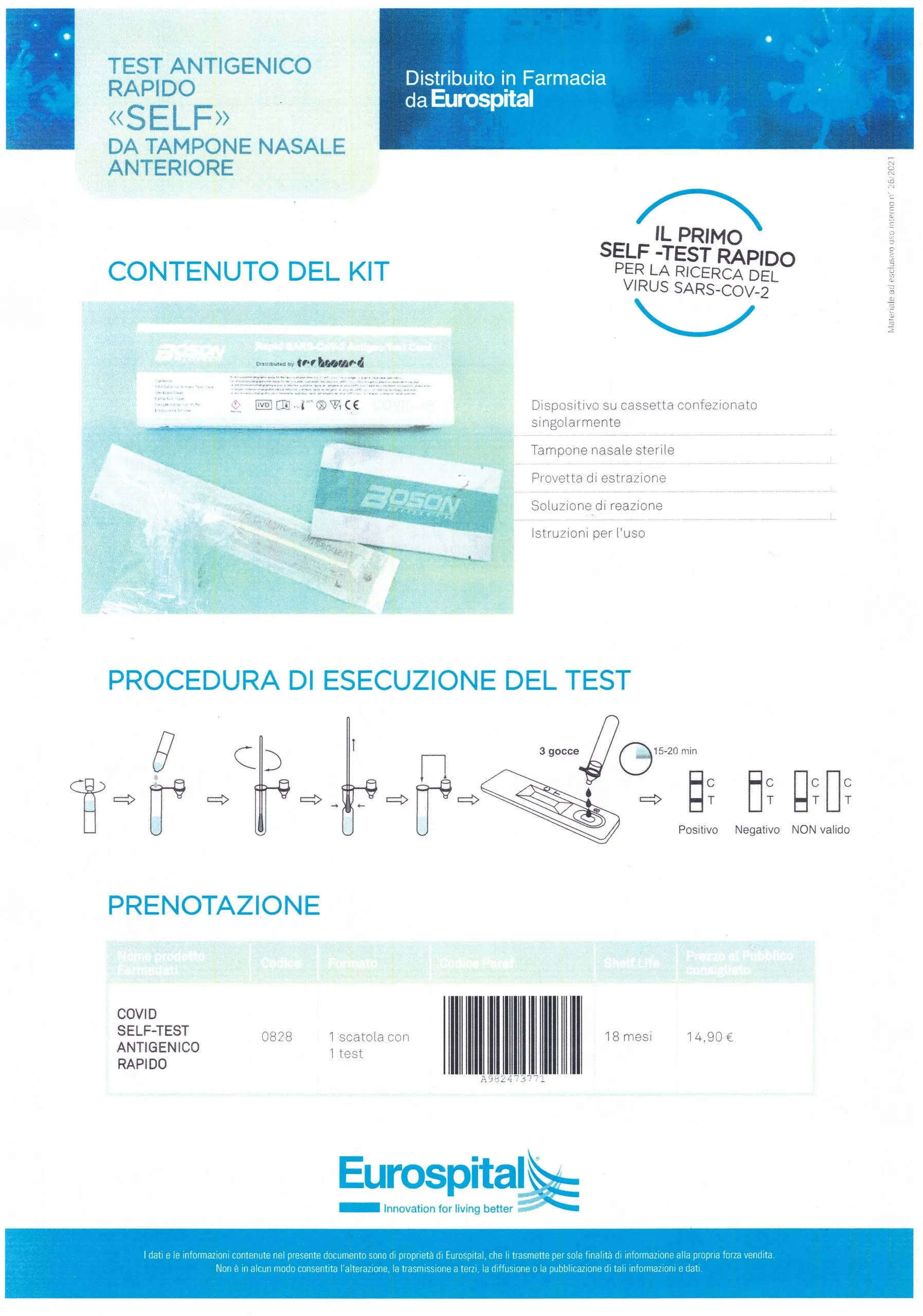 – cassetta di prova per l’antigene SARS-CoV-2 (busta di alluminio sigillata);