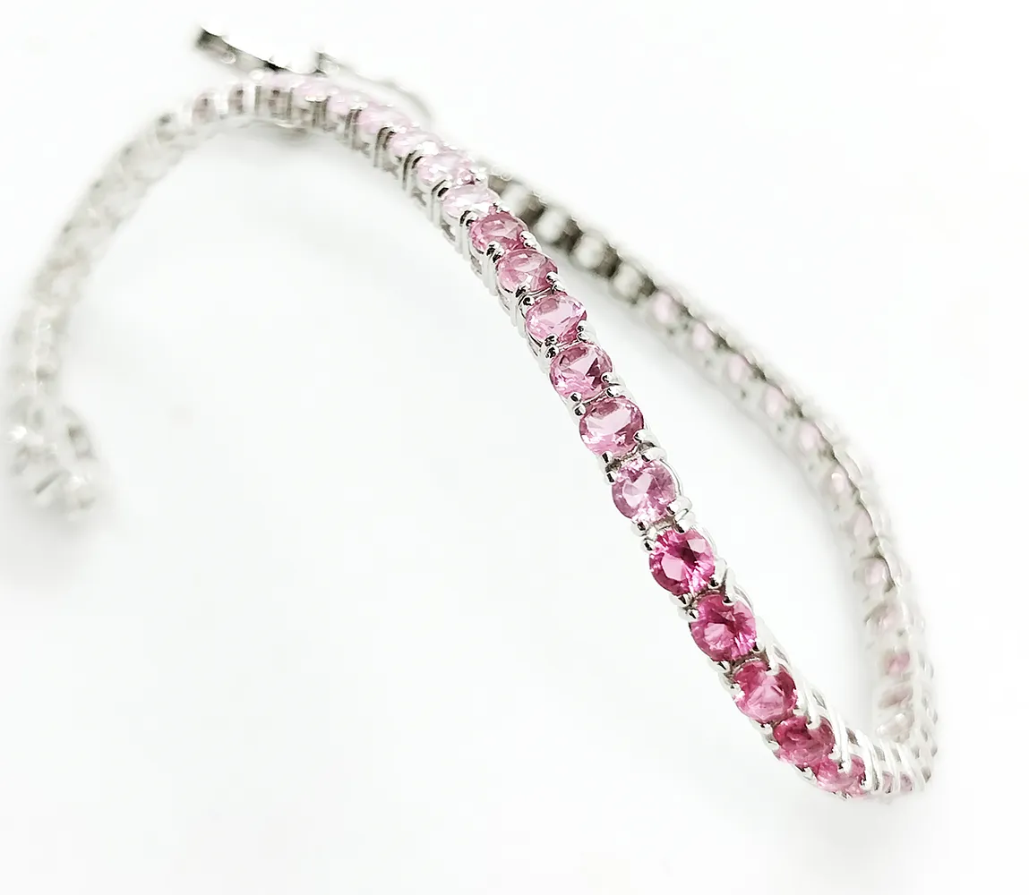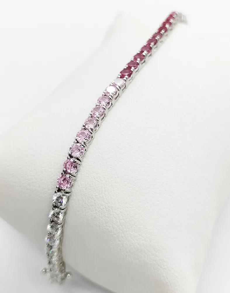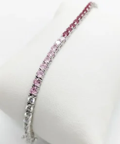 Bracciale Donna Tennis Argento 925 Rodiato Zirconi Brillanti Sfumati Rosa 18cm