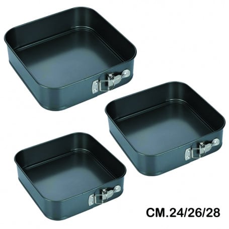 Set 3 Tortiere Quadre Forme dolci Pizze Con cerniera cm 24-26-28 Art 64216