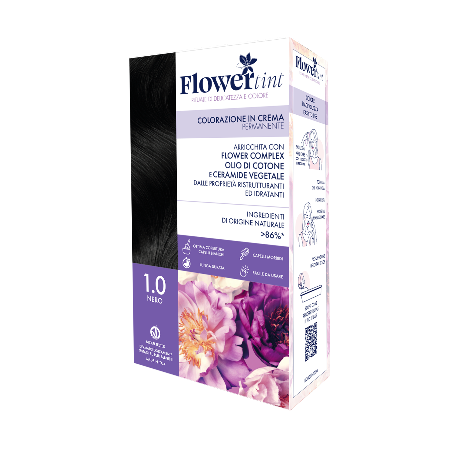 Dermatologicamente testato su pelli sensibili, nickel tested , vegan, senza resorcina , parafenilendiammina, ammoniaca